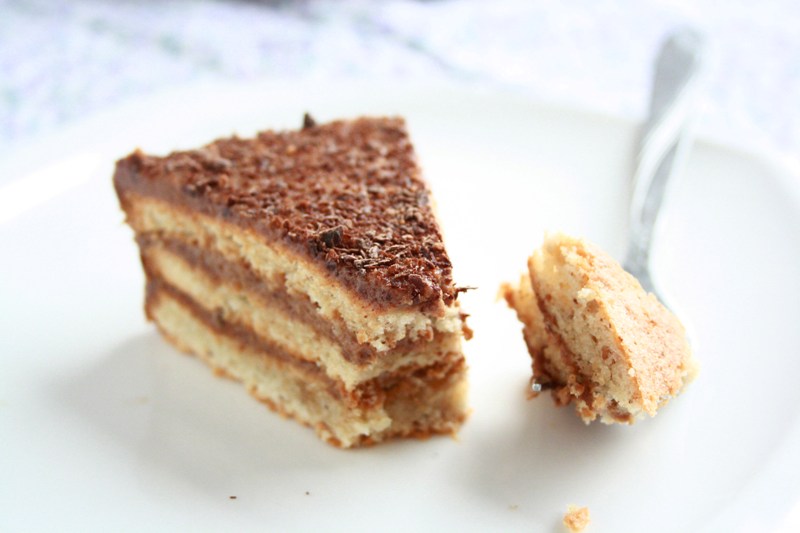 The first thing I'm going to say is that I've been taking too many photos of each dessert I make. This cake wasn't an exception. Oh yes, I took a crazy amount of photos this time but how can I help myself?! Isn't it beautiful? I think it really is but maybe not as beautiful as delicious. Now - seriously. This was one of the most delicious cakes I've made. (ok, I know that I say so almost everytime I bake a cake but this time I mean it. I even ate 3 slices at the time). The sponge was soft, moist, chewy and nutty and the filling.. ohh.. the filling. It was a chocolate divine. The cake is huge so I divided the ingredients in half and baked it in a small tin but I do not reccommend it for you because it's insanely delicious. (I should have used the whole amount of ingredients, otherwise, I might have eaten 6, not 3 slices). The cake was gone the same day it was made.
